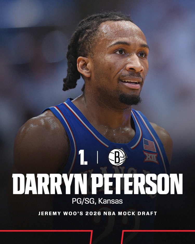 11月19日讯 ESPN对2026年NBA选秀进行了模拟预测,其中几位大热门都被排在了靠前的位置。达林·彼得森被认为会被篮网选为状元,迪班萨则在第二顺位被奇才选中。