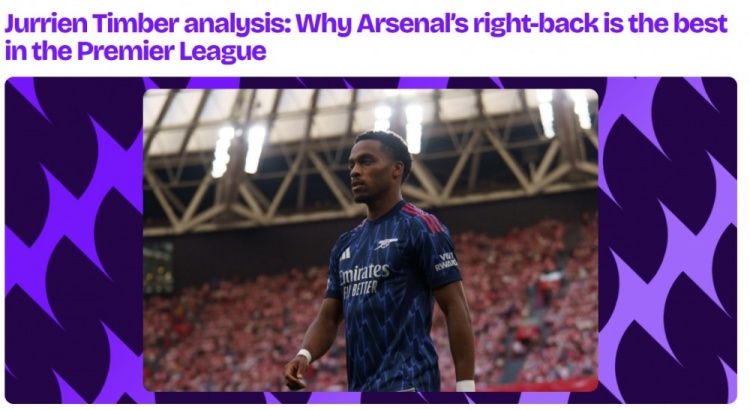 据统计,廷伯是本赛季英超所有边后卫中,在运动战中创造机会最多(8次)、在对方禁区内触球最多(24次)的球员,并且是唯一一位赢得过点球的边后卫。在主帅阿尔特塔的战术体系下,他所在的右路贡献了全队39%的进攻,这一比例高居联赛第三。